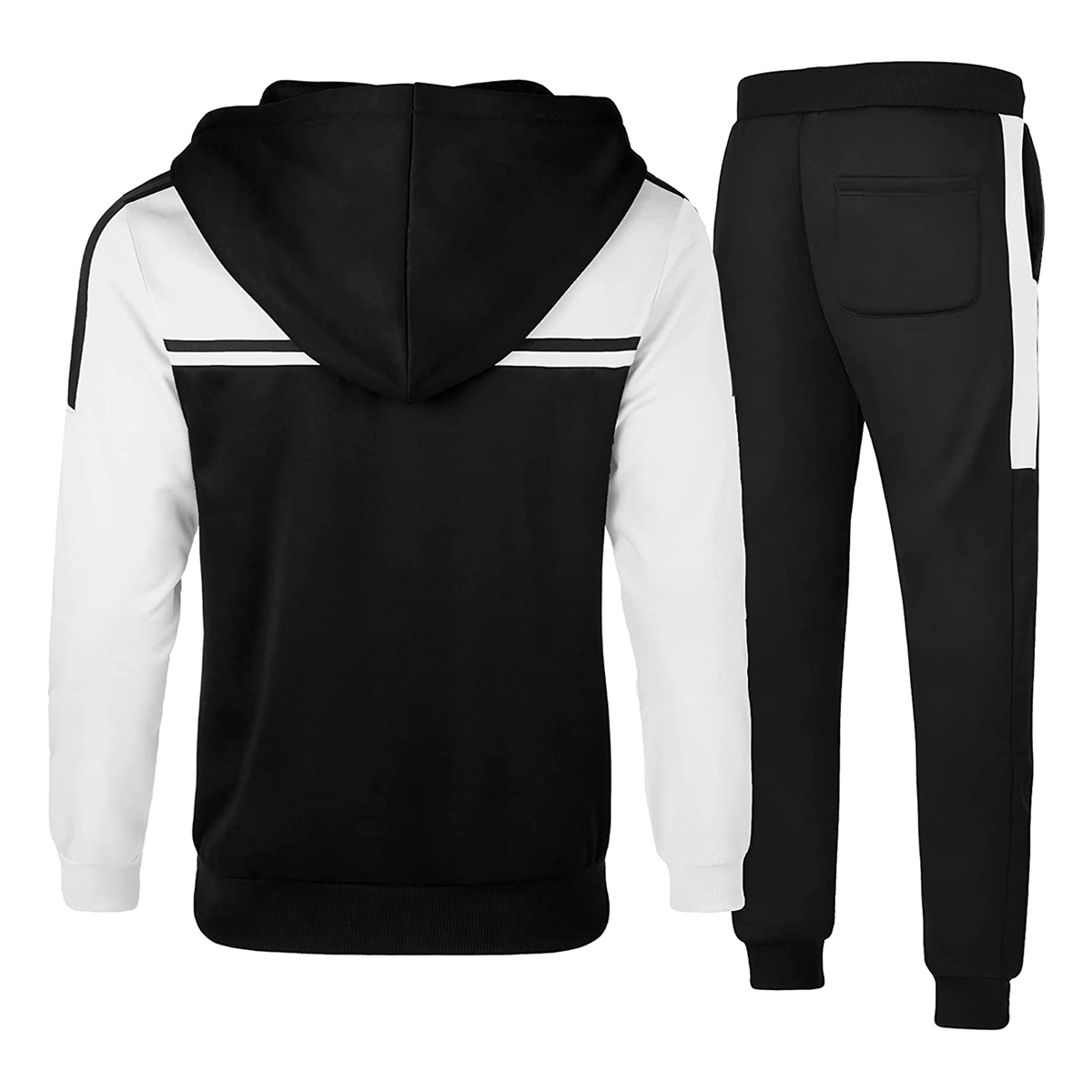 - ?Hooded Tracksuits? You can put your keys, your wallet, phone,etc.in your Zipper Pocket and be worry free about those things sliding out. Full-zip front offers easy on-and-off. Hooded makes your warm and block wind and dust.Pants: delicate waist elastic design with drawstring, easy to put on.